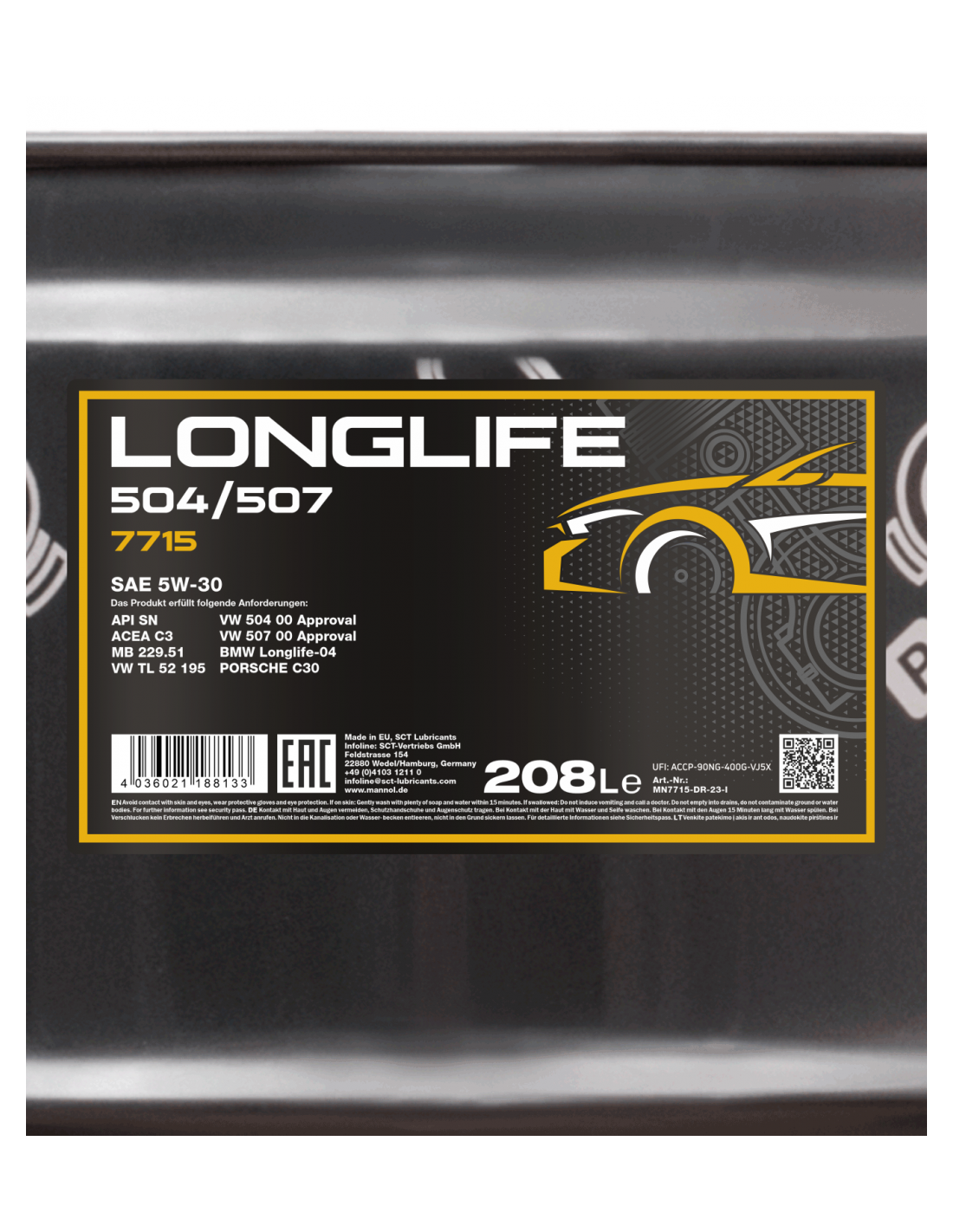 Asegura el máximo rendimiento y protección de tu motor con nuestro aceite de motor premium totalmente sintético universal que contiene PAO. Diseñado para motores de gasolina y diésel modernos de los automóviles del grupo VW, incluidos aquellos con inyección directa y turbocompresor, así como los equipados con inyectores-bomba (Pumpe-Düse).