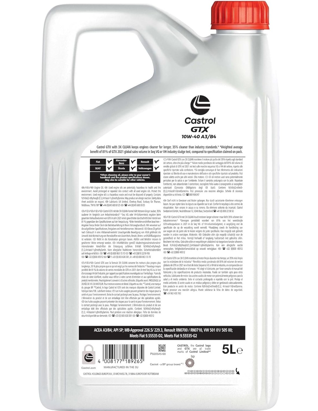 🚗 Castrol GTX 10W-40 A3/B4 es la opción perfecta para mantener tu motor protegido y funcionando como nuevo.