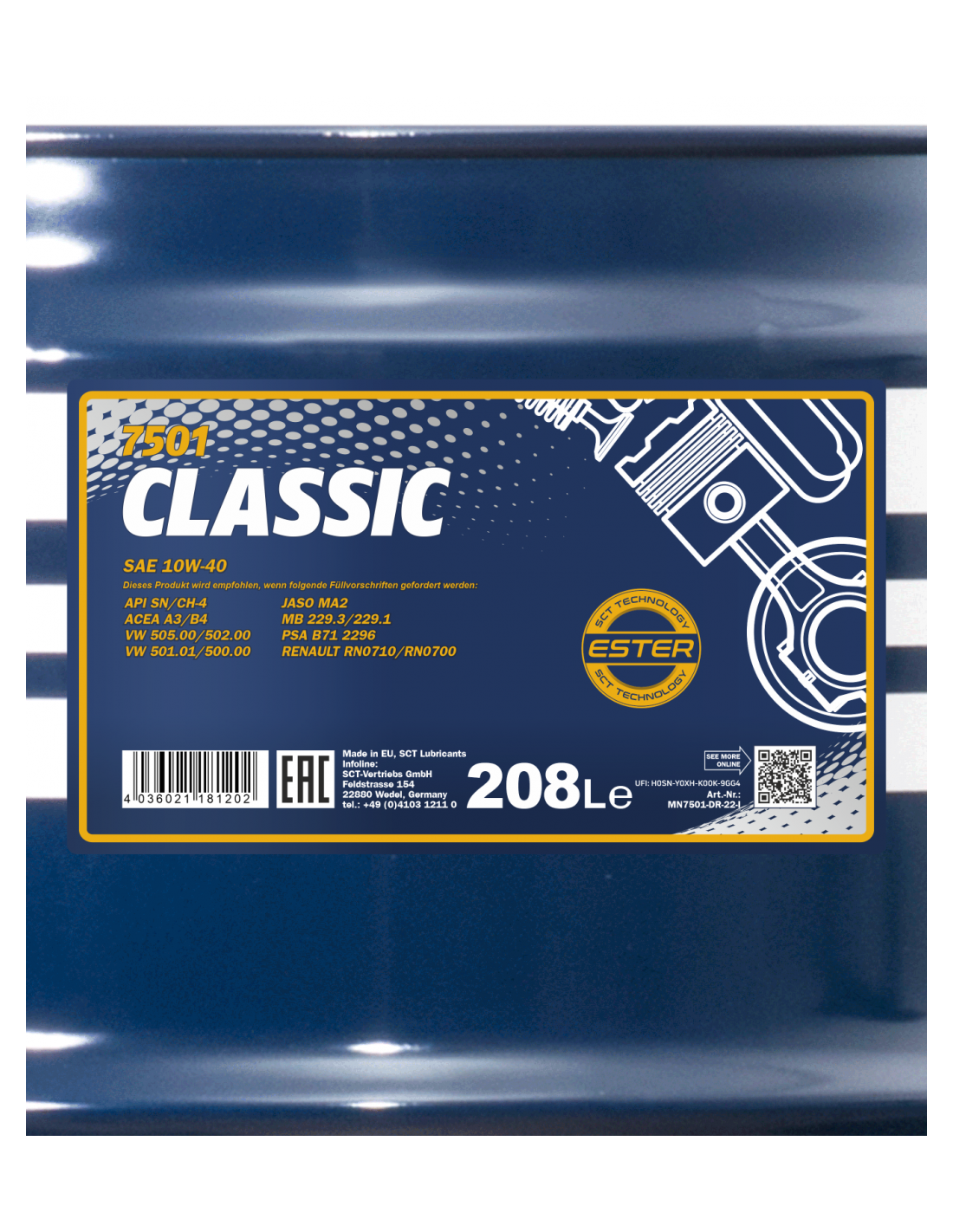 Lubricante premium para motores de gasolina y diésel modernos, con o sin turbocompresor. Diseñado según los estándares europeos y recomendado para Daimler, VW y Renault.