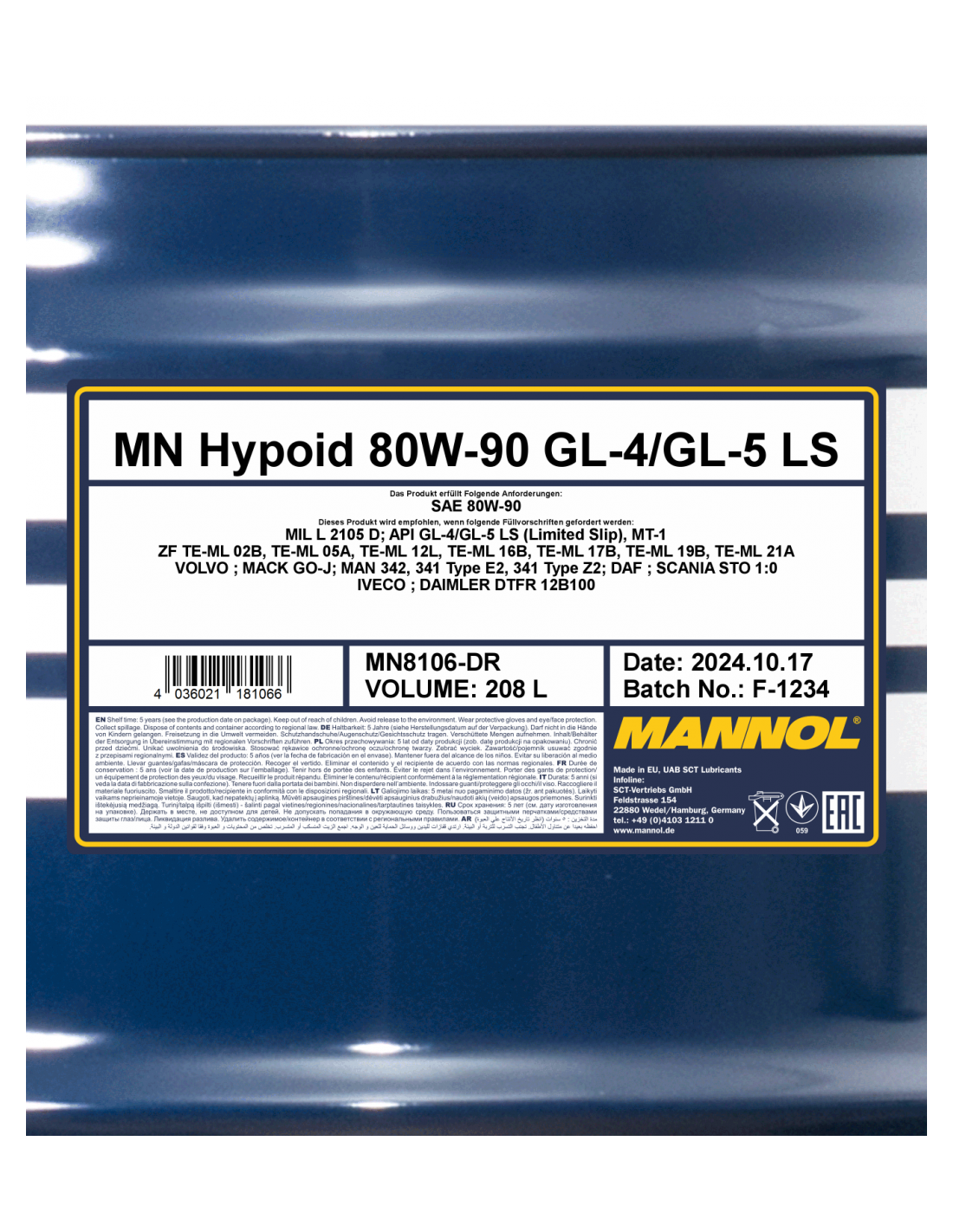 MANNOL Hypoid 80W-90 GL-4/GL-5 LS – Versatilidad y protección para transmisiones exigentes
