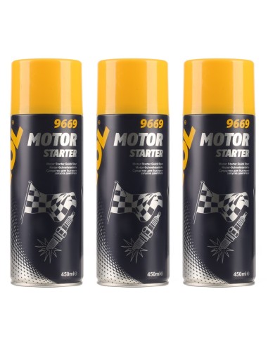 Facilita el arranque de motores diésel y de gasolina con nuestro producto especial en aerosol, Motor Starter. Ideal para motores de turismos, camiones, maquinaria agrícola y de construcción, motocicletas, ciclomotores, vehículos todo terreno, motos de nieve, motosierras, herramientas a gas, equipos de jardinería, motores marinos y de barco, motores de compresor, y generadores. Proporciona un arranque rápido y fiable en condiciones de frío extremo, alta humedad, bujías mojadas, suministro irregular de combustible y batería descargada.