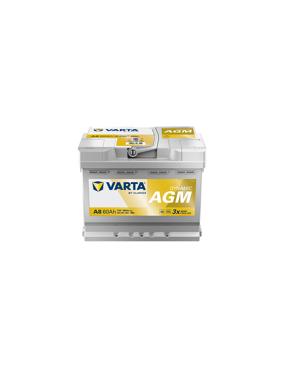 BATERÍA VARTA A8 DYNAMIC AGM 60 Ah  680  ARRANQUE + DERECHA