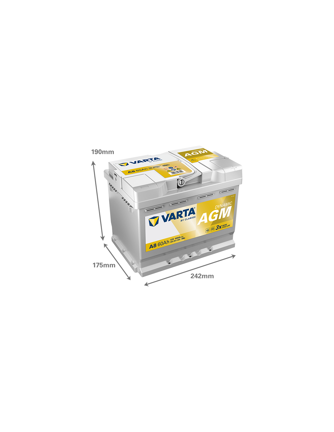 BATERÍA VARTA A8 DYNAMIC AGM 60 Ah 680 ARRANQUE + DERECHA