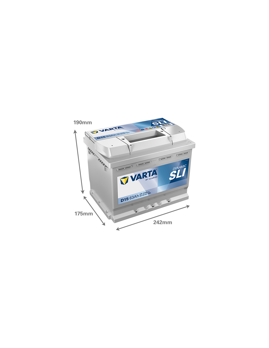BATERÍA VARTA D15 DYNAMIC SLI 63 Ah  610  ARRANQUE + DERECHA