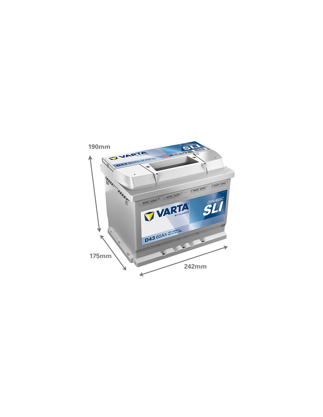 BATERÍA VARTA D43 DYNAMIC SLI 60 Ah 540 ARRANQUE + DERECHA