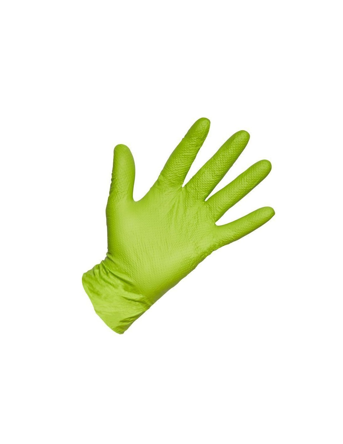Guante reforzado en nitrilo diamantado, diseñado para trabajos de alta exigencia con excelente resistencia mecánica y química. Su textura diamantada ofrece un agarre seguro incluso en condiciones de humedad o grasa, garantizando comodidad y durabilidad. Es ambidiestro, reutilizable, fácil de colocar y cuenta con alta visibilidad en color verde.