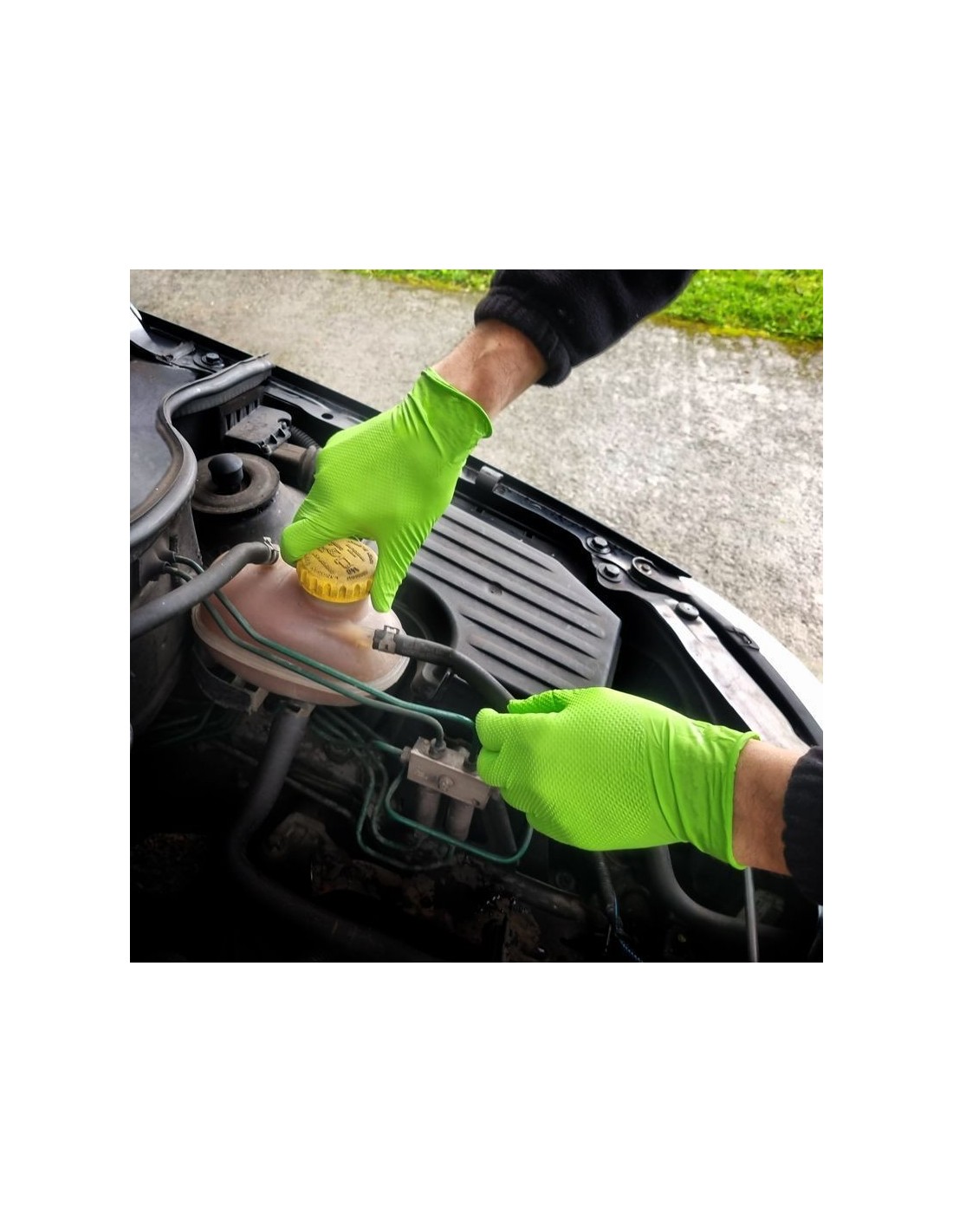 Guante reforzado en nitrilo diamantado, diseñado para trabajos de alta exigencia con excelente resistencia mecánica y química. Su textura diamantada ofrece un agarre seguro incluso en condiciones de humedad o grasa, garantizando comodidad y durabilidad. Es ambidiestro, reutilizable, fácil de colocar y cuenta con alta visibilidad en color verde.