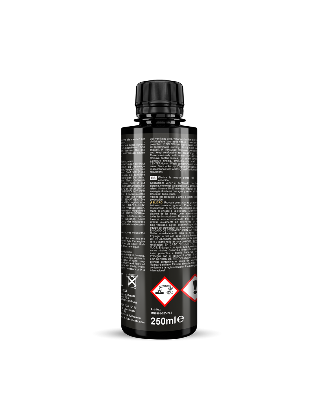 🛢️ Aplicación recomendada: Añadir el contenido al sistema, activar la calefacción, dejar actuar de 10 a 30 minutos, enjuagar y rellenar con refrigerante nuevo.