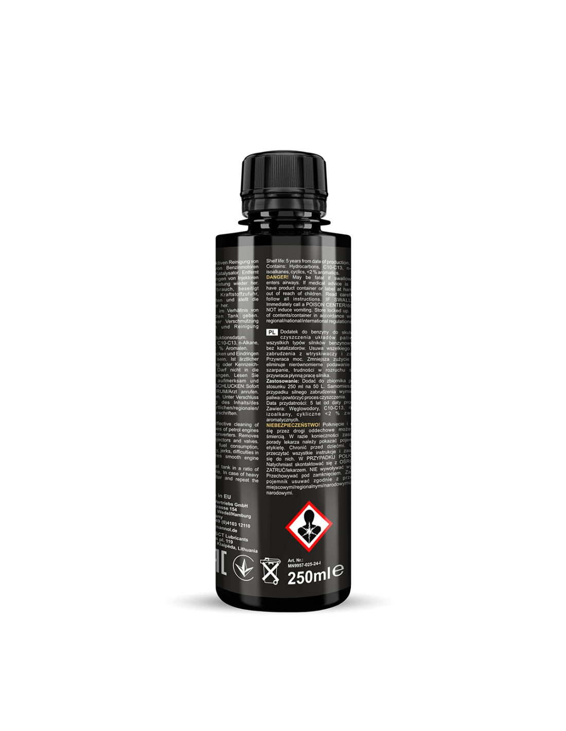 Es un limpiador universal para motores de gasolina, formulado para inyectores multipunto (MPI), inyección directa (GDI) y sistemas con carburador, asegurando máxima limpieza, estabilidad en la combustión y protección del motor.