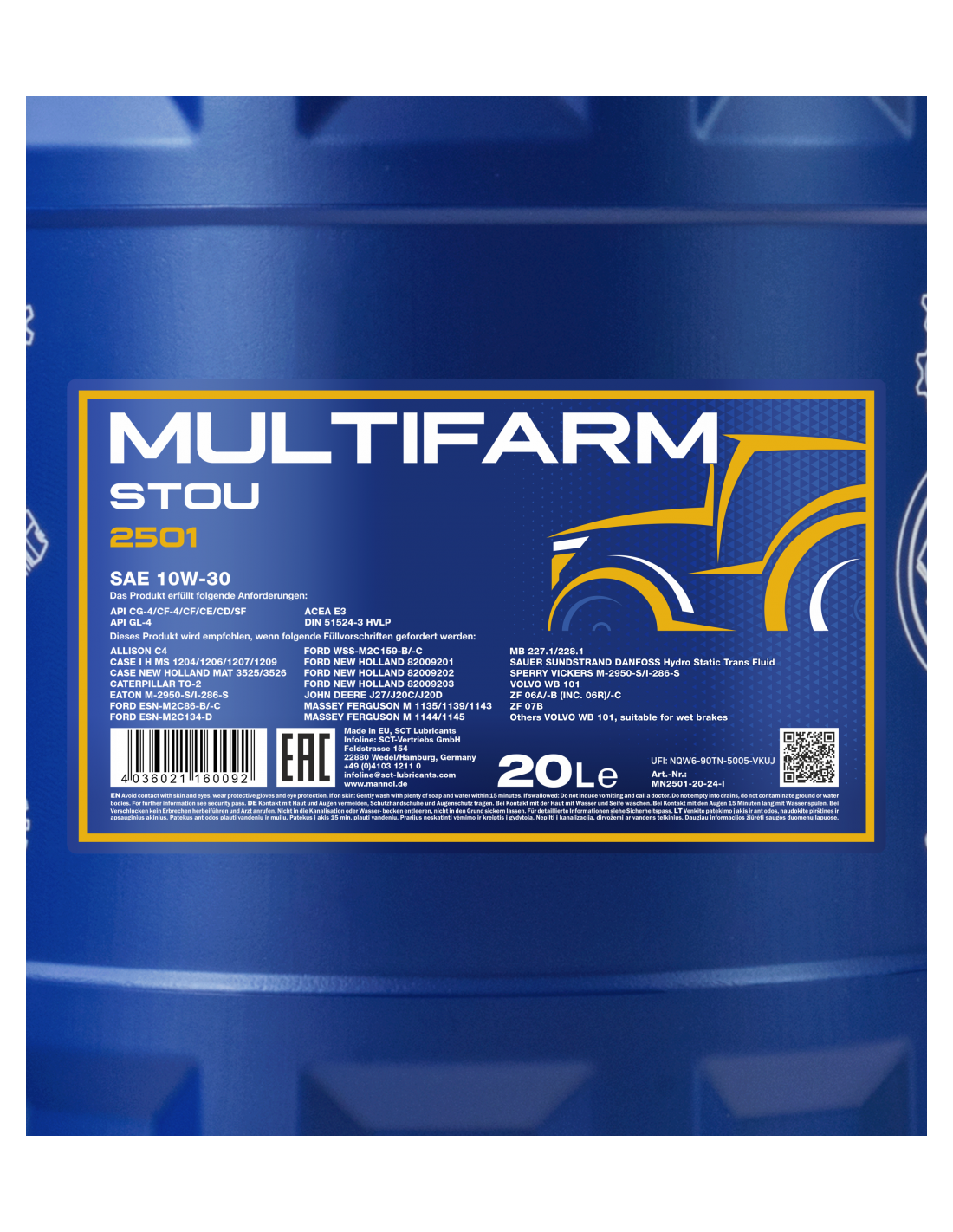 MANNOL Multifarm STOU 10W-30 - Rendimiento y protección para maquinaria agrícola