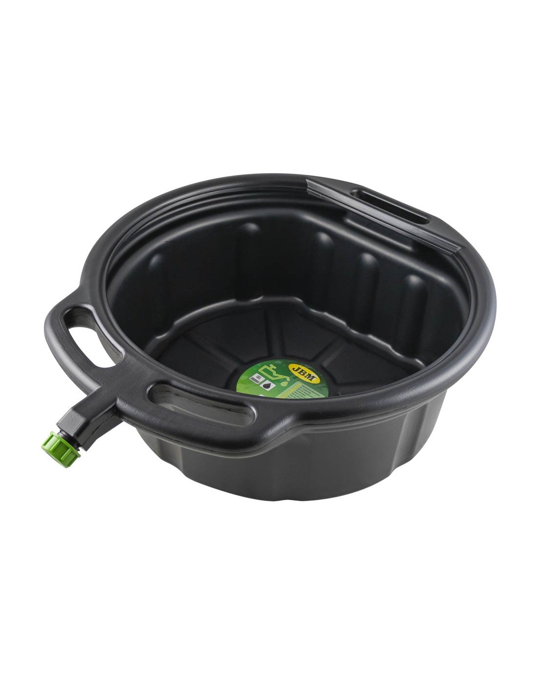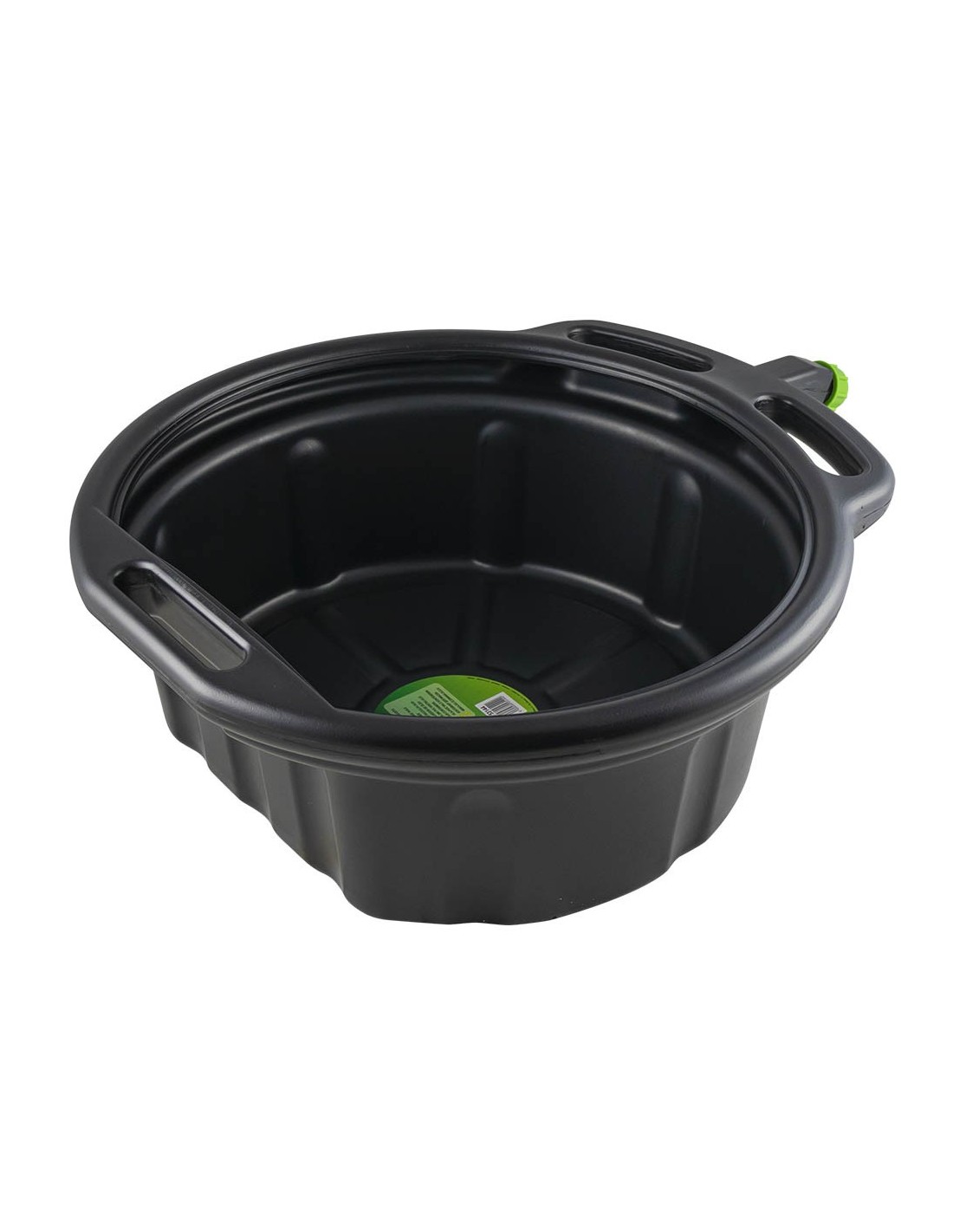 Bandeja de recogida de aceite 18L en polietileno de alta densidad. Diseño resistente y ligero (solo 0,96 kg), ideal para el mantenimiento de vehículos y trabajos de taller. Cuenta con un pico grande que facilita el vertido sin derrames y un asa moldeada que asegura un transporte cómodo, práctico y seguro. Incorpora además boquilla de salida con tapón a rosca, perfecta para vaciar el contenido de forma limpia y sencilla. Sus medidas (55x46x18 cm) la convierten en una herramienta versátil, con gran capacidad de recogida en espacios compactos.