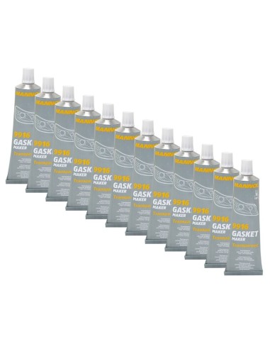 MANNOL Gasket Maker Transparent es un sellador monocomponente de alta calidad que se endurece a temperatura ambiente. Tiene excelentes propiedades adhesivas y aglutinantes, ideal para pegar y sellar parabrisas de vehículos, faros, intermitentes, luces de freno y más. Sustituye juntas de goma, papel y corcho.